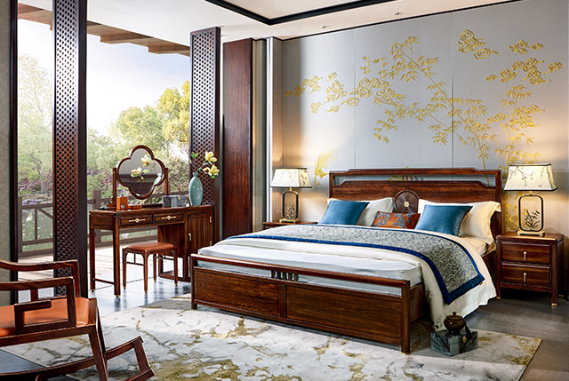產量較多中式家具風靡于現代室內設計中、雞翅木和酸枝等,紫檀的色澤多為紫黑色。其實無論酒店定制廠家是哪一種木材,在這個時候只要生產成新中式家具的話,那么在這種情況下,它的質量肯定是有保障。而且她直接的擺放在我們房間里或者是,客廳里邊的時候,直接會響應出更多上檔次的成分。